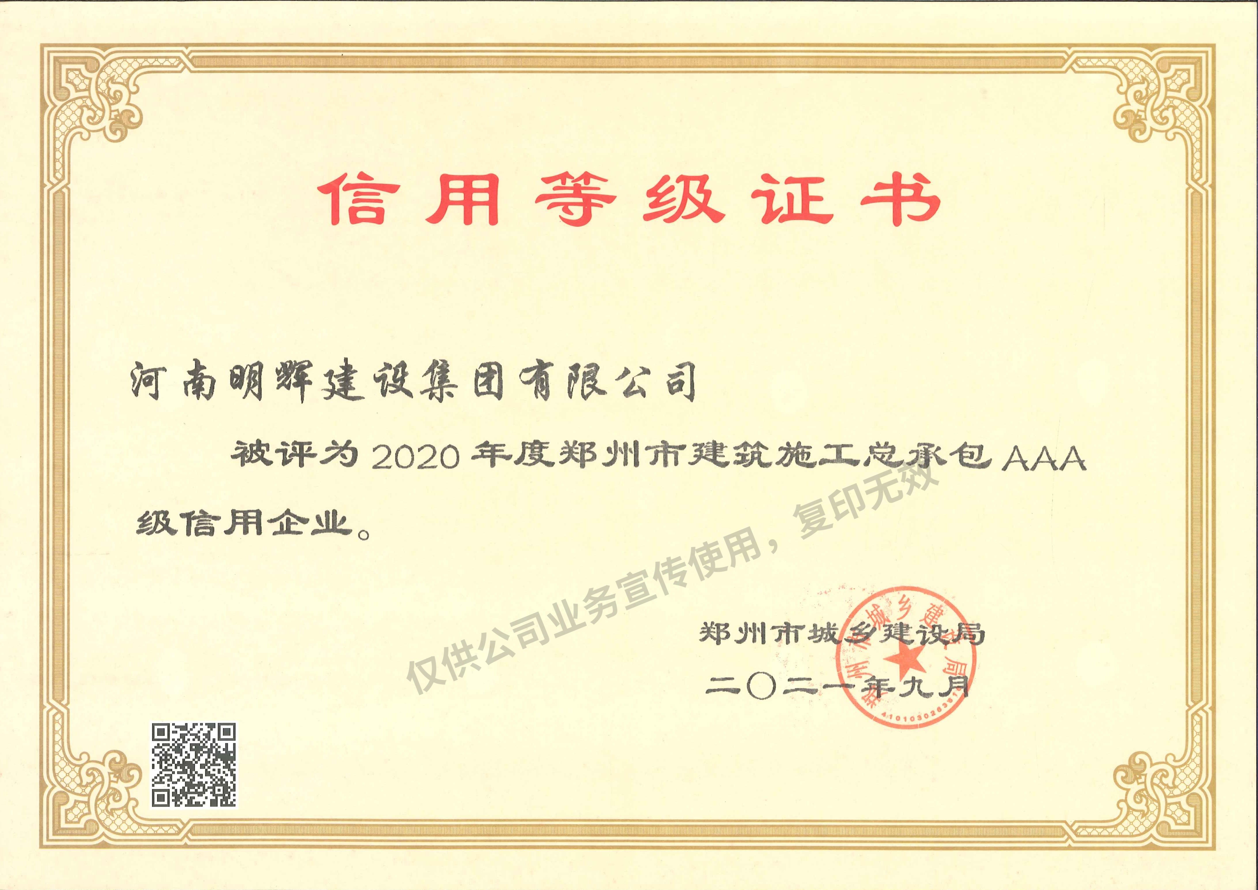 郑州市AAA级信用企业